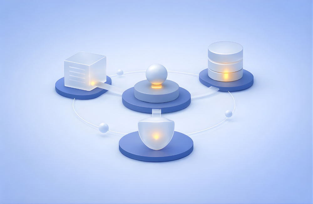 The architecture has three layers that reinforce each other.